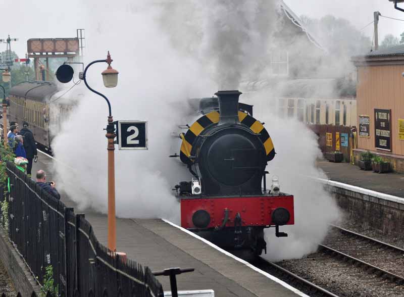 1873 Jessie departing from Bishops Lydeard, with the steam hiding the train engine.