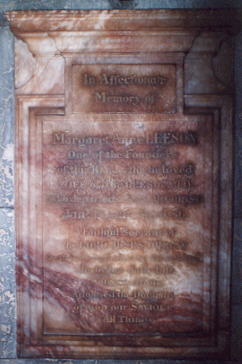 | This plaque in memory of Margaret Leeson can now be found at the back of the church.